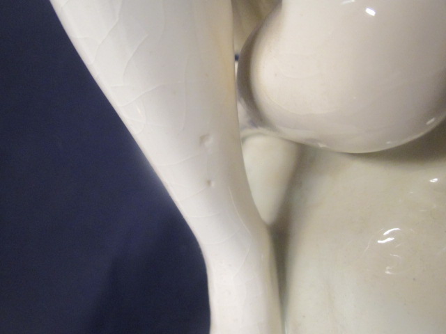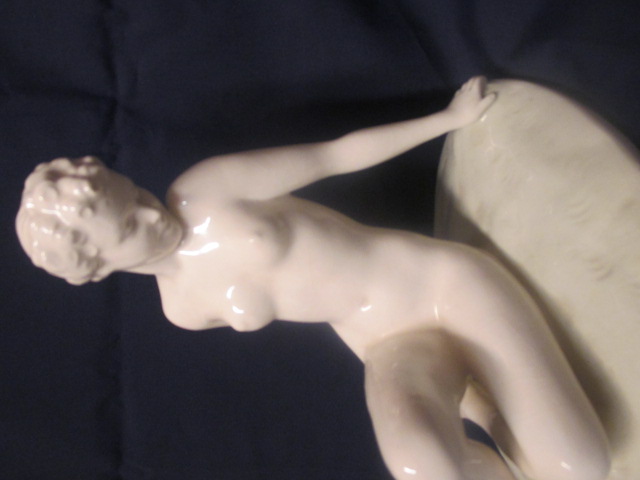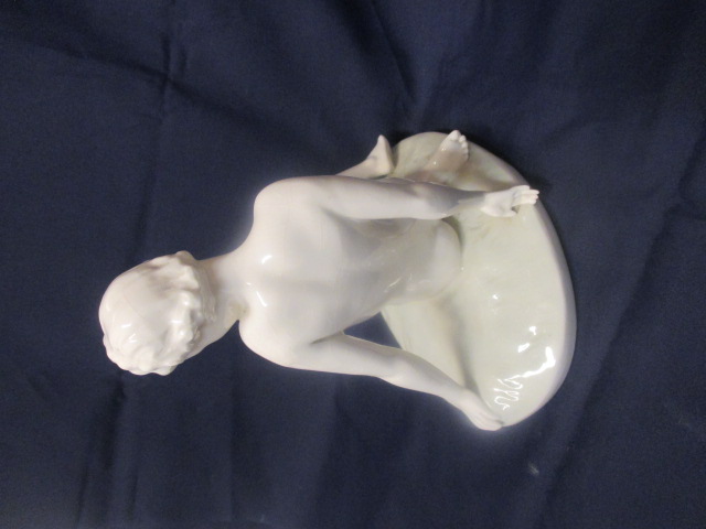 Socha ženy akt. Sochaje vyrobena z porcelánu. Vyrobeno v Československu. Ve spodní části sošky jsou vtlačena čísla.