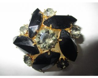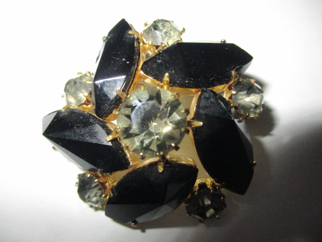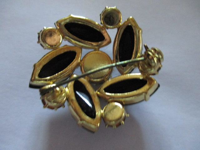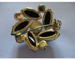 Retro brož, ozdoba - krásná retro brož na halenku, šaty či sáčko - velikost průměr 4 cm, brož je osázena pěti tmavými kamínky - moc elegantní