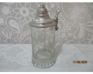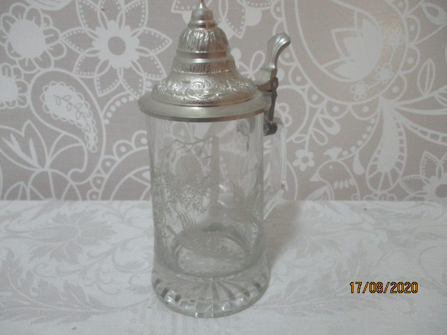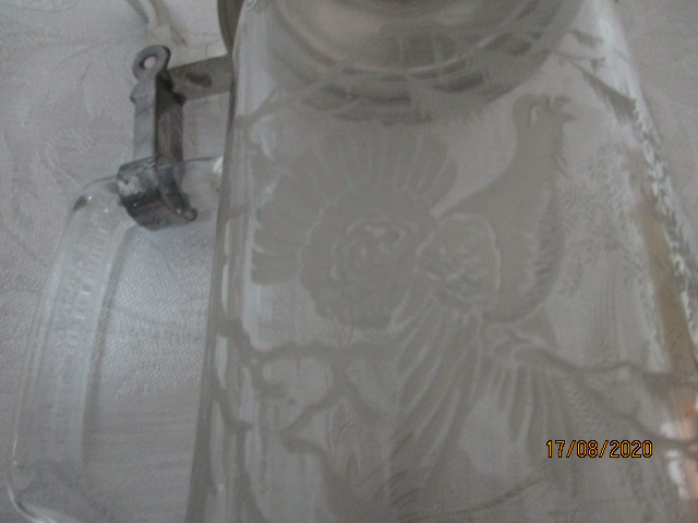 Korbel, krýgl, sklenice na pivo s kovovým víkem - celková velikost 22 cm - nádherný brus koroptev a ptáků, ruční práce - PETRÁK ART.CO.CZ Domažlice