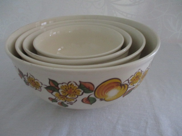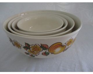 Retro silnostěnné misky 4 v 1 - čtyři míse o velikosti 13, 5, 16, 19 a 21, 5 cm - výrobce DDR - motiv květiny - bez poškození