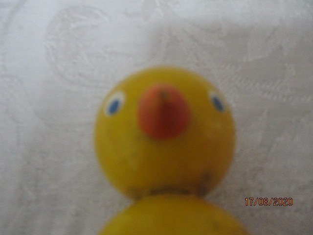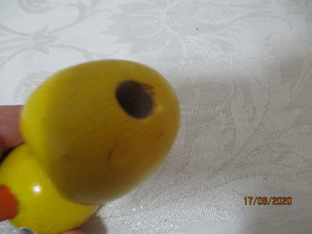 Stará dřevěná hra - kuřátko - velikost 7 cm - počet kusů 17 - cena za jeden kus - tato hra se dříve používala ve školce spolu s ostatními dřevěnými hračkami, částmi jako je např. hruška, panenka, stromeček apod. K čemu hra sloužila se můžeme pouze již domnívat, snad k odlišení skupinek dětí nebo k získání jejich vědomostí...?