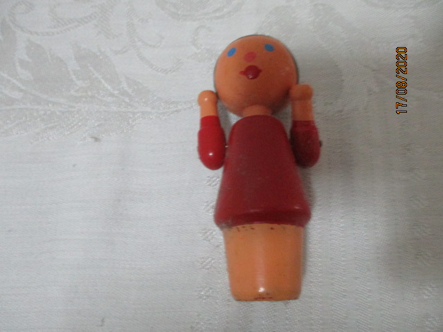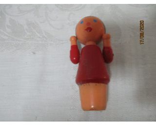 Stará dřevěná hra - panenka - velikost 8, 5 cm - počet kusů 13 - cena za jeden kus - panenka má pohyblivé ruce - tato hra se dříve používala ve školce spolu s ostatními dřevěnými hračkami, částmi jako je např. hruška, panenka, stromeček apod. K čemu hra sloužila se můžeme pouze již domnívat, snad k odlišení skupinek dětí nebo k získání jejich vědomostí...?