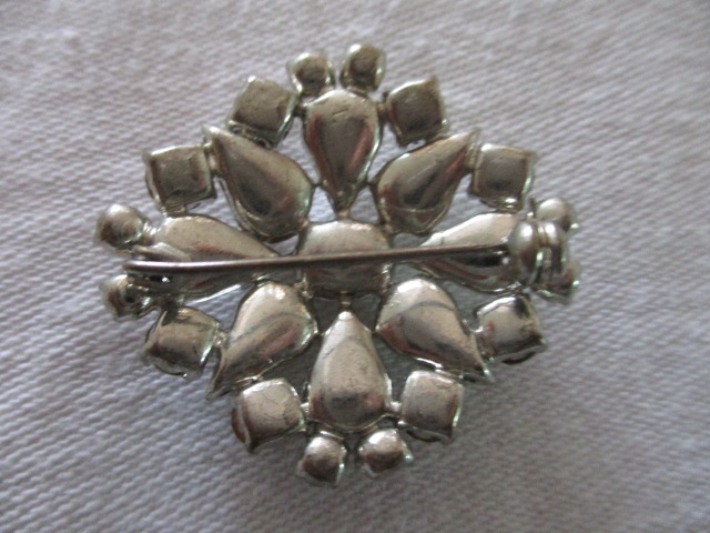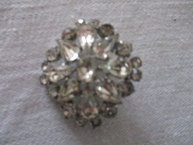 Retro šperk, brož - 3, 5 x 3, 5 cm - nádherné bílé lesklé kamínky - vhodné na klopu saka nebo jako ozdoba na košili pod límeček