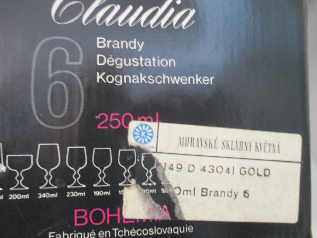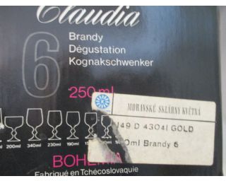Napoleonky, 6 kusů, retro sklenice - v původním balení, obsah 250 ml. - Moravské sklárny Květná, Bohemia, Claudia - nové, nepoužité - prostě super koňakovky...