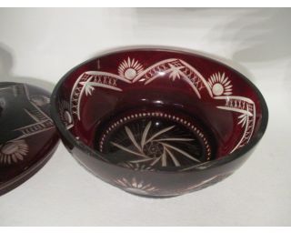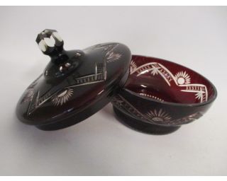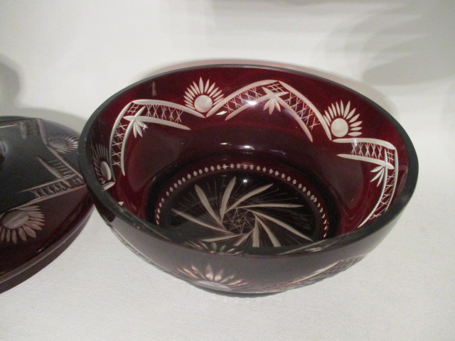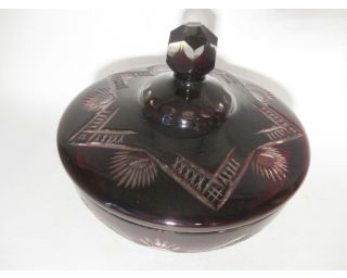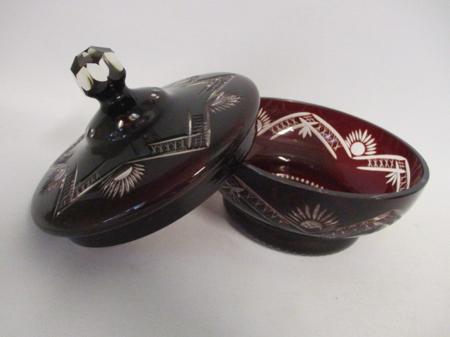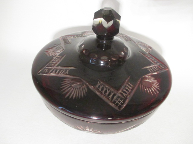 Dóza - rubínové sklo - červené sklo - průměr 16 cm - výška je 15 cm - bez znatelných oťuků