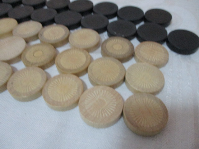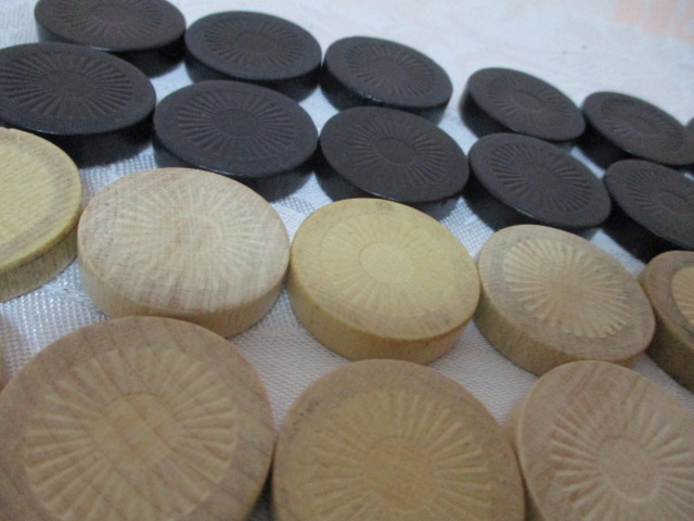 Dáma - retro hra - dřevěné figurky, žetony - bez hracího plánu, pouze figurky o průměru 3 cm - černé 16 + 1, bílé 16 + 5