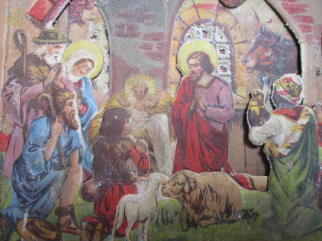 Betlém, vánoční betlém, Vánoce - velikost 20, 5 x 25 cm - nad betlémem napsáno: Gloria in Excelsis Deo!