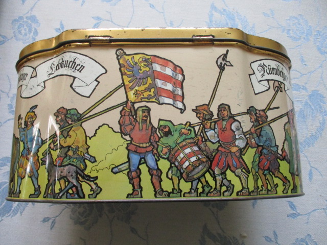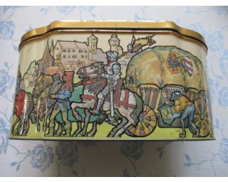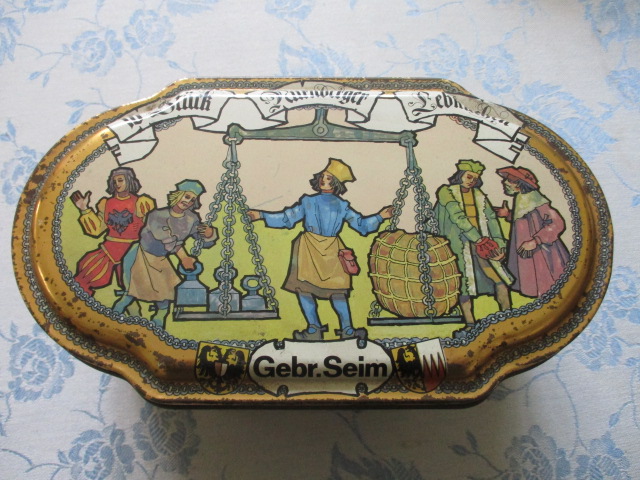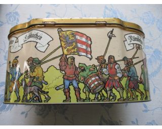 Stará plechovka - zajímavý tvar - sběratelství - Rozměry: 21x12x10 cm - krásná kresba, zachovalá