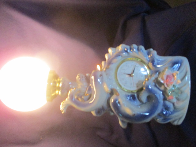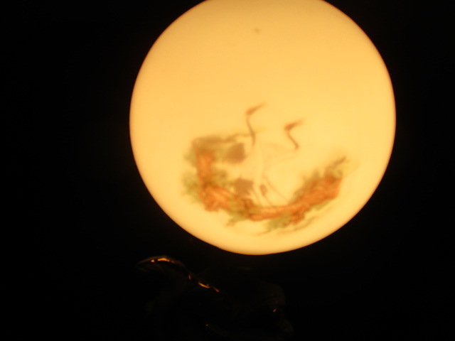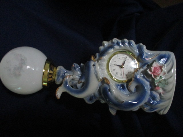 Retro lampička, hodiny s dálkovým ovládáním - čínský motiv - delfínci - celková velikost je 41 cm, svítící koule má průměr 12 cm, hodiny jsou na jednu tužkovou baterii - vše nové, nepoužité