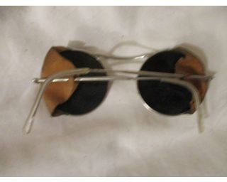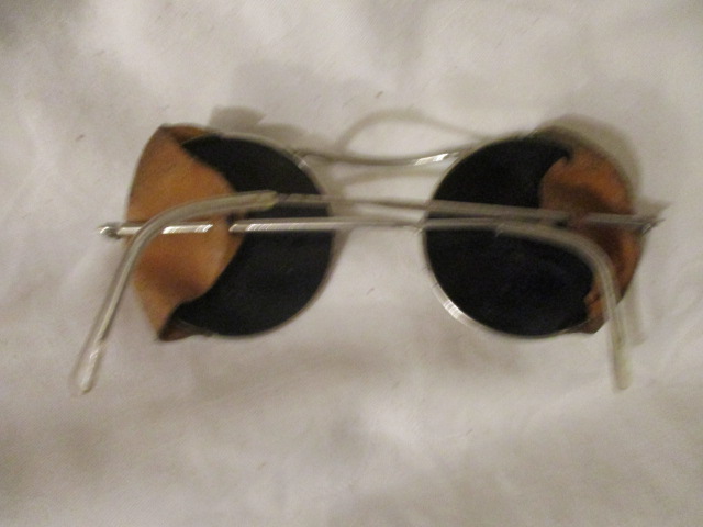 Svářečské brýle, tmavá skla - průměr skel 5 cm - rok 1965 - boční kožené doplnění - pěkný stav