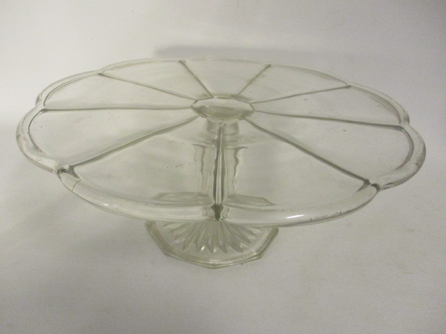 Tác na dort, skleněný tác, retro tác - tác na nožce - průměr 31 cm, výška je 11, 5 cm - moc pěkný, bez viditelného poškození