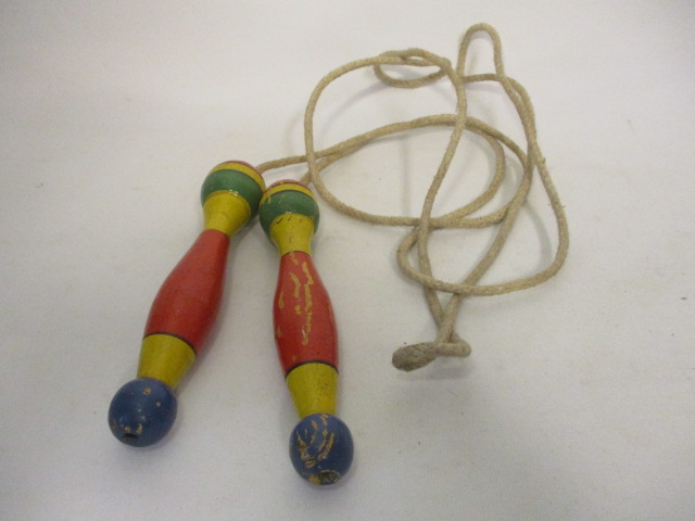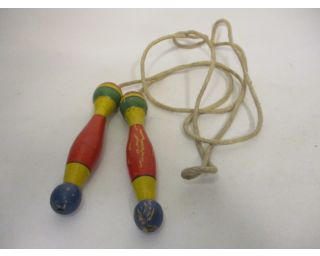 Retro švihadlo - staré švihadlo s krásnou dřevěnou barevnou rukojetí - délka švihadla 220 cm