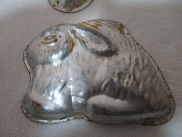 Stará formičky na pečení: zajíc, šiška a škeble, 4 kusy - dobrý stav