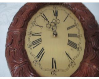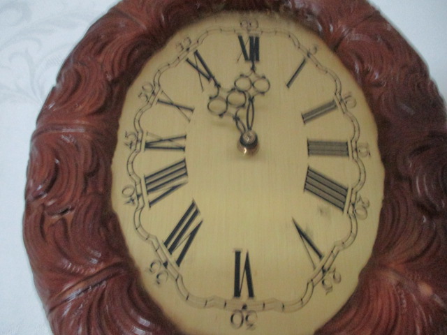 Retro nástěnné hodiny - oválné - velikost 31x24cm - osmdesátá léta, materiál poplatný době tzn. plech, plast - strojek na jednu větší baterii, funkční