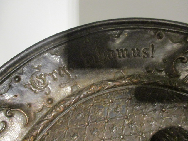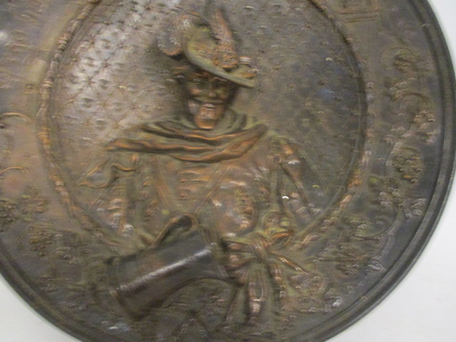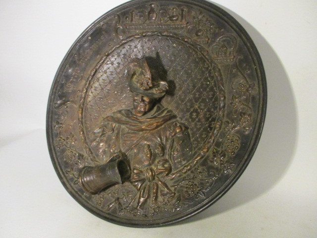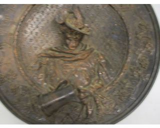 3D talíř - rytíř se džbánem - krásný talíř 3 D o průměru 33, 5 cm z černé hmoty - krásná práce...