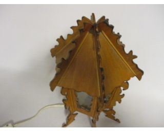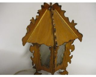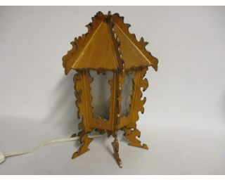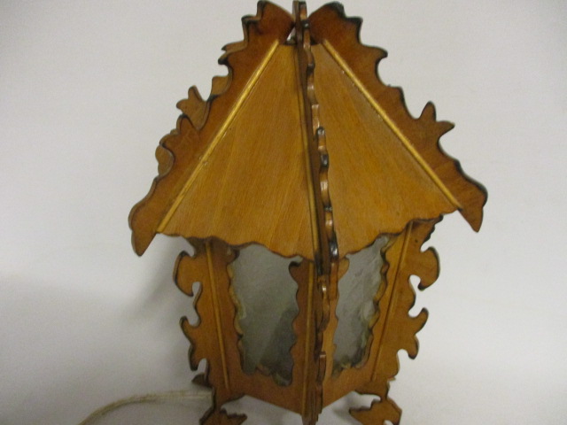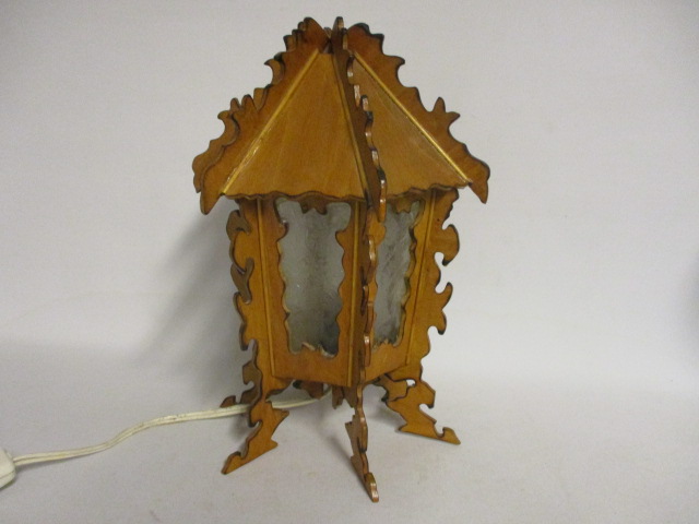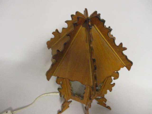 Retro stolní lampička ze dřeva - vyřezávaná, výška 32cm, průměr 26cm, stáří přibližně padesát let