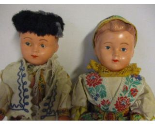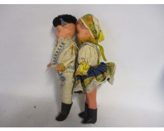 Panenka v kroji, pár v kroji, stará panenka, sběratelství, stará hračka - krojovaný pár - viz foto. Panenky mají velikost 30cm. Hlava a tělíčko je z bakelitu, ruce a nohy gumové. Stav dle fota. Cena za pár.