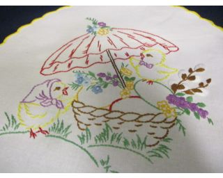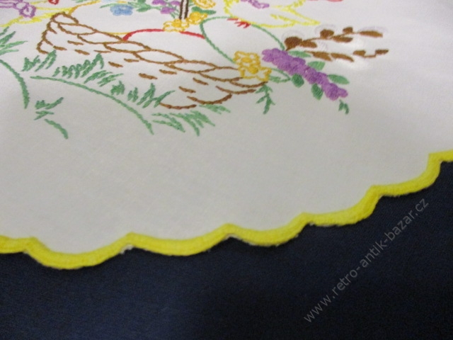 Velikonoce - vyšívaná dečka. Průměr 33 cm.