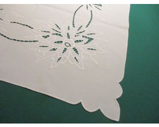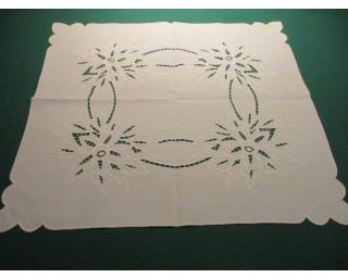 Vyšívaný ubrus, retro ubrus, čtverec. Bílá výšivka na bílém plátně. Rozměry: 65x70cm. Krásná, jemná, sváteční.