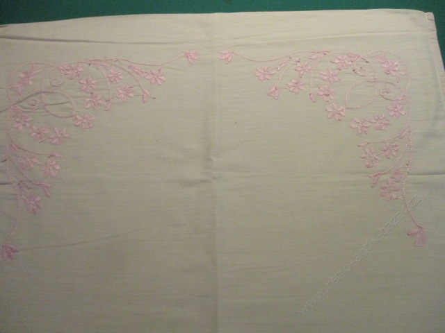 - Háčkované a vyšívané ubrusy a dečky Vyšívaný povlak na polštář, růžová výšivka