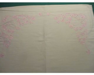 Vyšívaný povlak na polštář, růžová výšivka na světlunko růžové látce. Rozměry: 40x51cm.