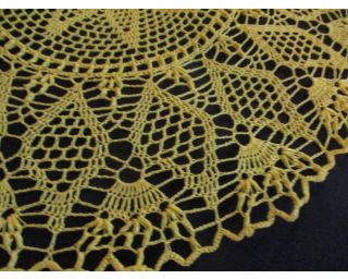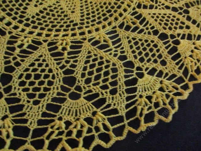 Velká háčkovaná dečka, ubrus, na jídelní stůl, ruční práce. Žlutá. Průměr: 47 cm. Bez poškození. Krásná ruční práce!