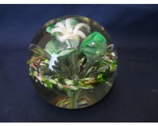 Staré těžítko s květinou. Velikost 9 cm, průměr 9,5. Bez poškození.