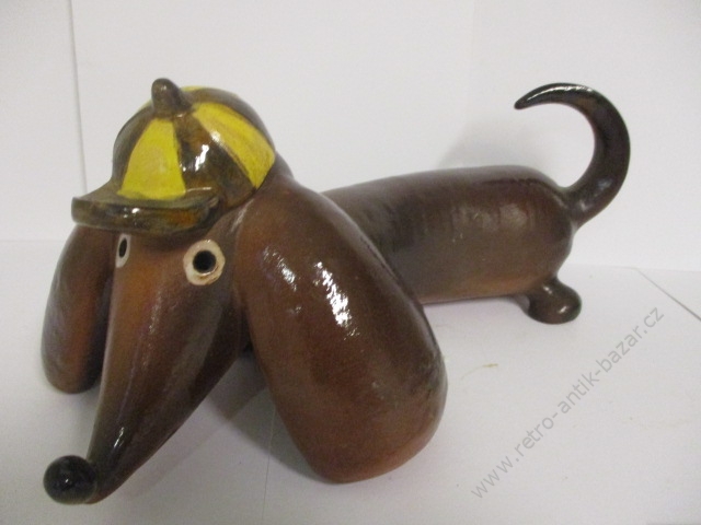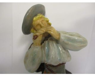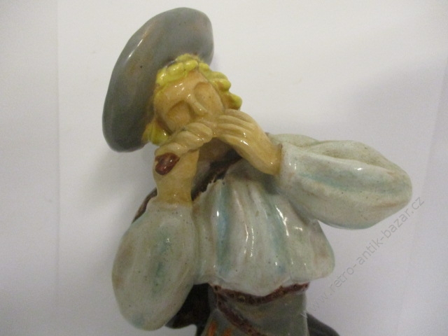 Bača s píšťalou, soška. Glazovaná pálená terakota. Období: 1940-1960. Výška 26 cm, šířka 13. Pěkný stav.
