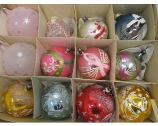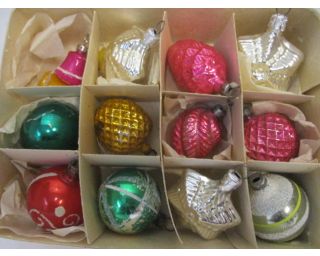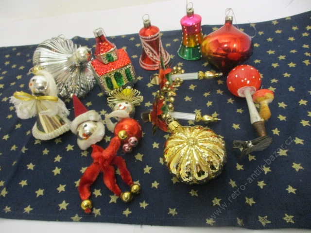 - Vánoční tématika Baňky, retro baňky, vánoční ozdoby - 12 kusů, mix baněk