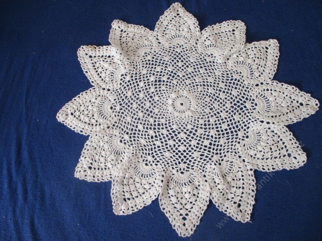 Bílá dečka, ruční práce, průměr 36 cm.