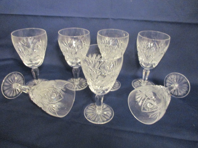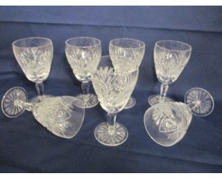 Broušené sklenice na víno, 7 kusů - velikost 14 cm - krásný brus - bez viditelného poškození