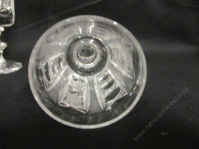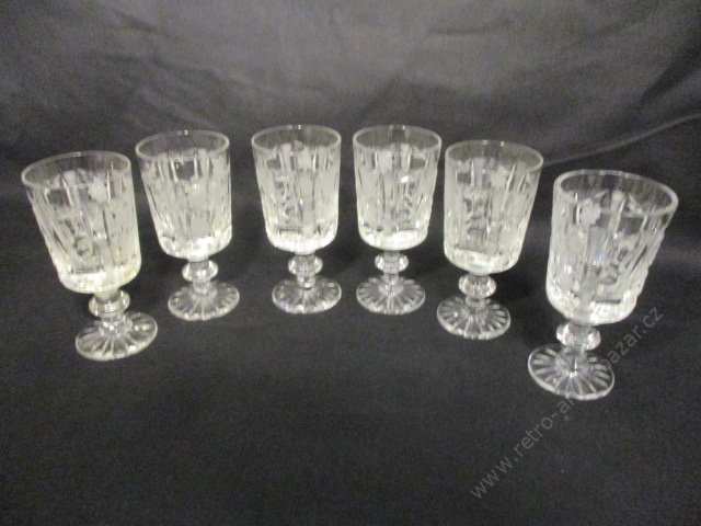 Broušené sklo - skleničky, štamprle, ruční práce. Velikost 9,5 cm. 6 kusů, bez poškození.