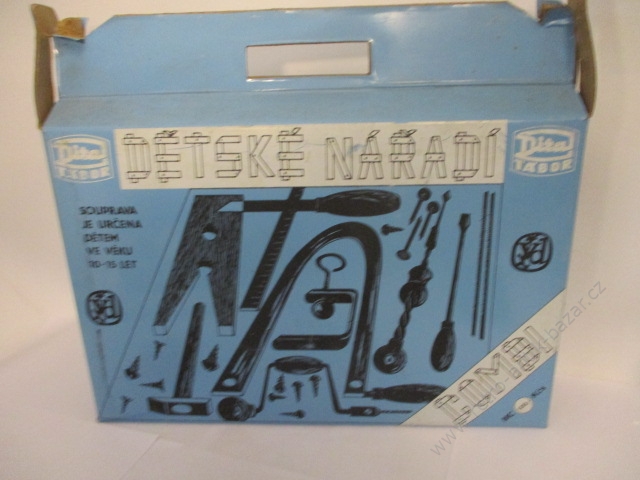 Dětské nářadí COMBI - stará hračka, výrobce DITA Tábor. Rozměry: 26 x 40 cm, 2 patra nářadí, úplné!