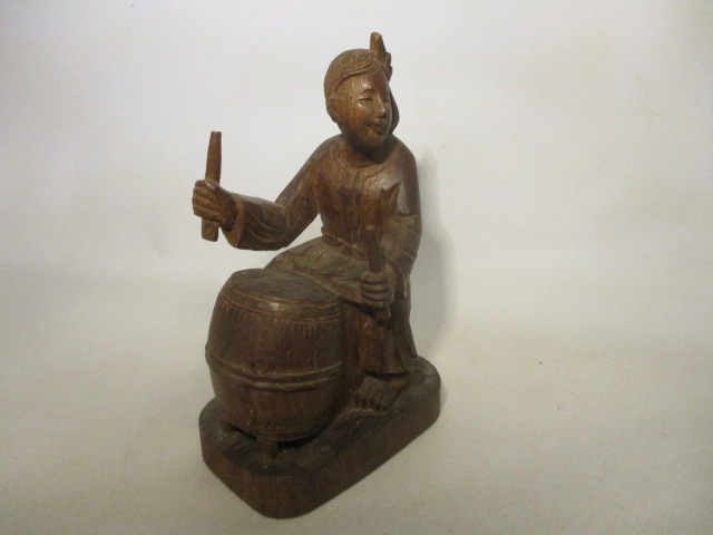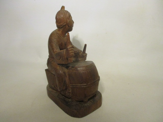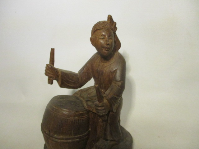 Dřevěná soška, čínský hudebník, soška ze dřeva - výška 16cm, šířka 11cm, stav viz foto