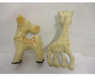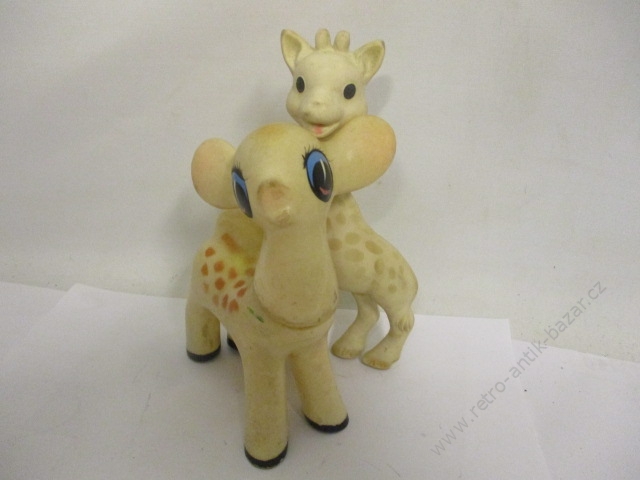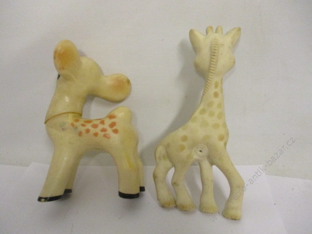 - Staré hračky Gumová pískací retro hračka žirafa, koloušek - 2 kusy