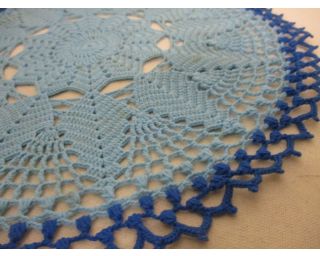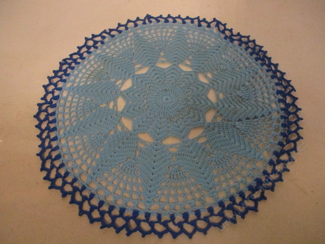 Háčkovaná dečka, modrá, průměr 24 cm. Krásná, výrazná!