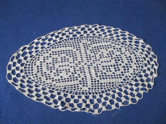 Háčkovaná dečka, ovál, 30 x 18 cm. Bílá. Pěkná ruční práce.