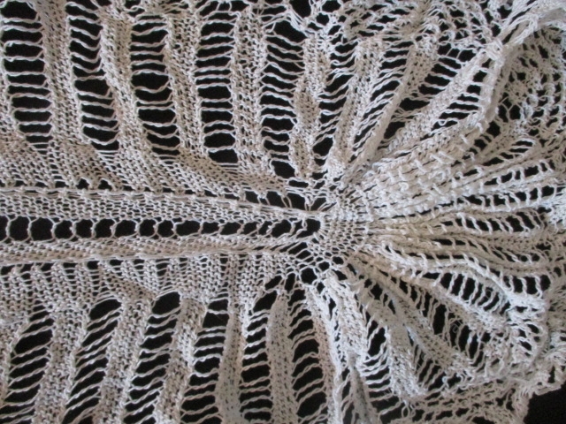 Háčkovaná dečka, bílá, ovál 85 x 40 cm. Pěkná, nálezový stav.