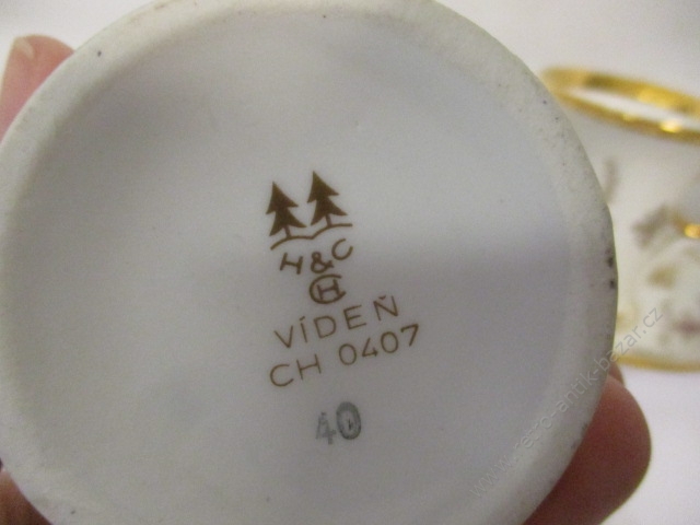 Hrnek, hrníček, značeno Vídeň, - 2 kusy. Velikost hrníčku je 8,5cm, průměr talířku 14,5cm. Cena za oba kusy.