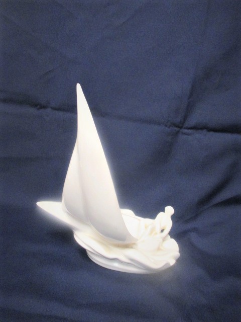 Socha jachtaře vyrobené někdy v polovině 20. století. Výška 24 cm.