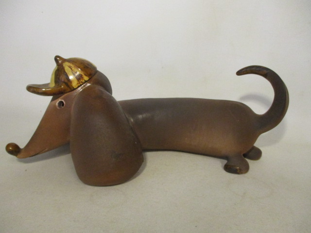 Jezevčík, pes z keramiky, retro postava, soška, dekorativní pejsek - délka je 32 cm, výška 14. Dobrý stav, bez viditelného poškození. A navíc, dobrý hlídač!!