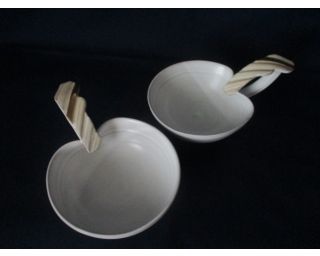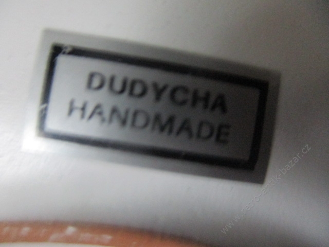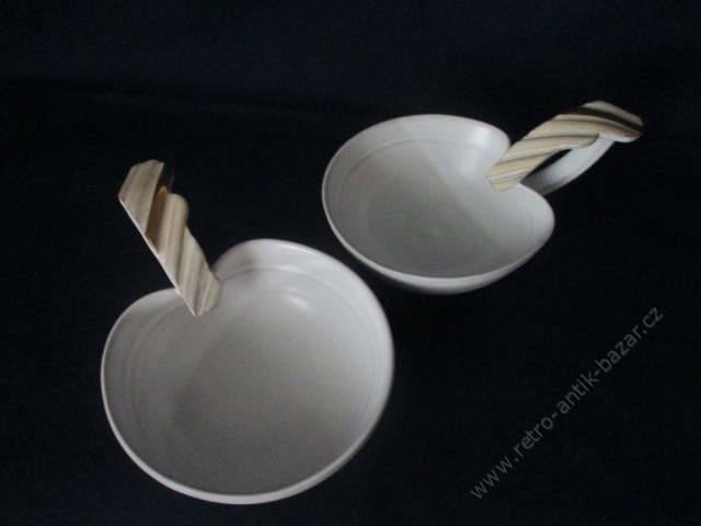 Keramický hrníček - DUCE. Délka 15 cm, výška 6,5. Jedná se o bílou keramiku, hladkou, oživenou zlatými prvky. Ruční práce. Cena za kus.