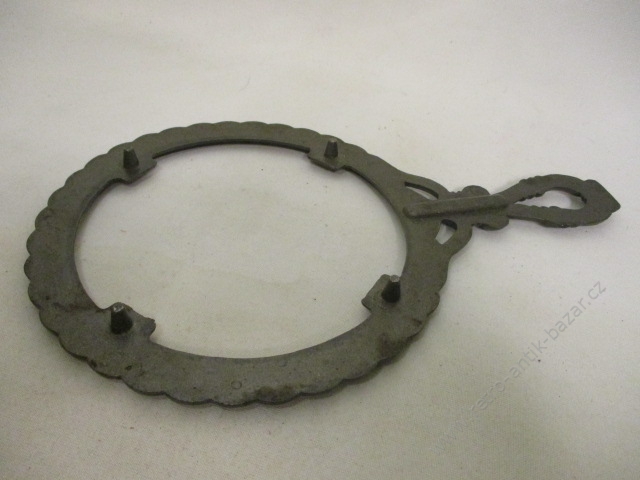 Kovová podložka pod hrnce. Délka 29 cm, průměr 19.