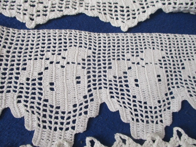 Krajky do starého kredence, 3 kusy. Bílá barva, ruční práce. Velikost: krajka s květinou 55 cm, krajka s ptáčkem 110 cm, krajka s jablíčkem 58. Použití je vícero. Možná najdete i jiné originální řešení. Cena za vše.