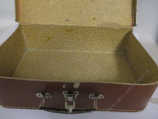 Kufřík dětský hnědý, retro kufřík na dětské "poklady" - retro klasika z papírového kartonu, používaný, dobrý stav - viz foto. Rozměry: délka 33, šířka 22, výška 10 cm.