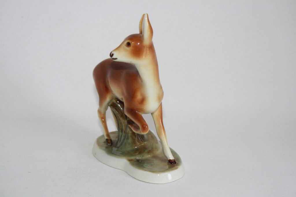 Malá soška srny, vyrobeno porcelánkou Royal Dux.