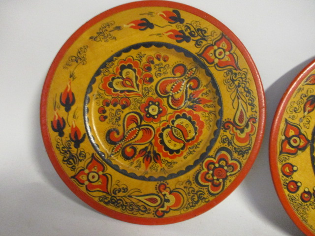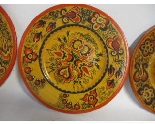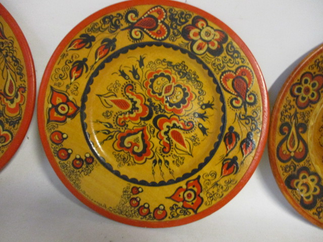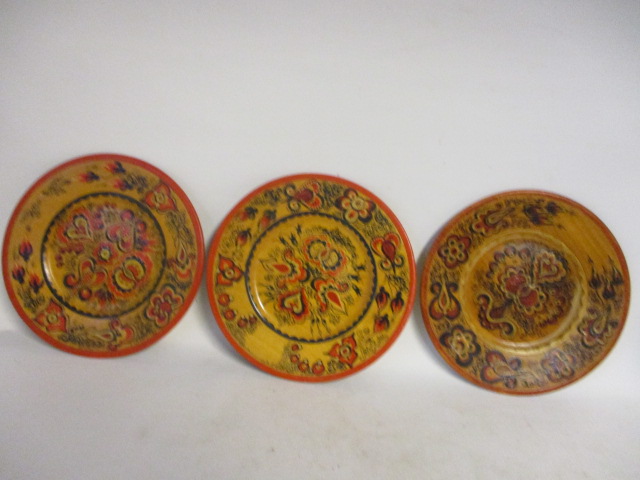 Malované dřevěné talíře - 3 kusy - lidový motiv - průměr talíře 23cm - cena za 3 kusy