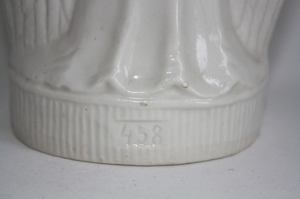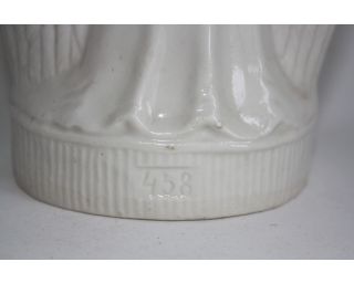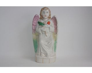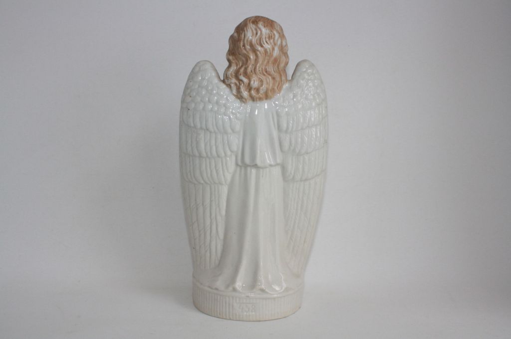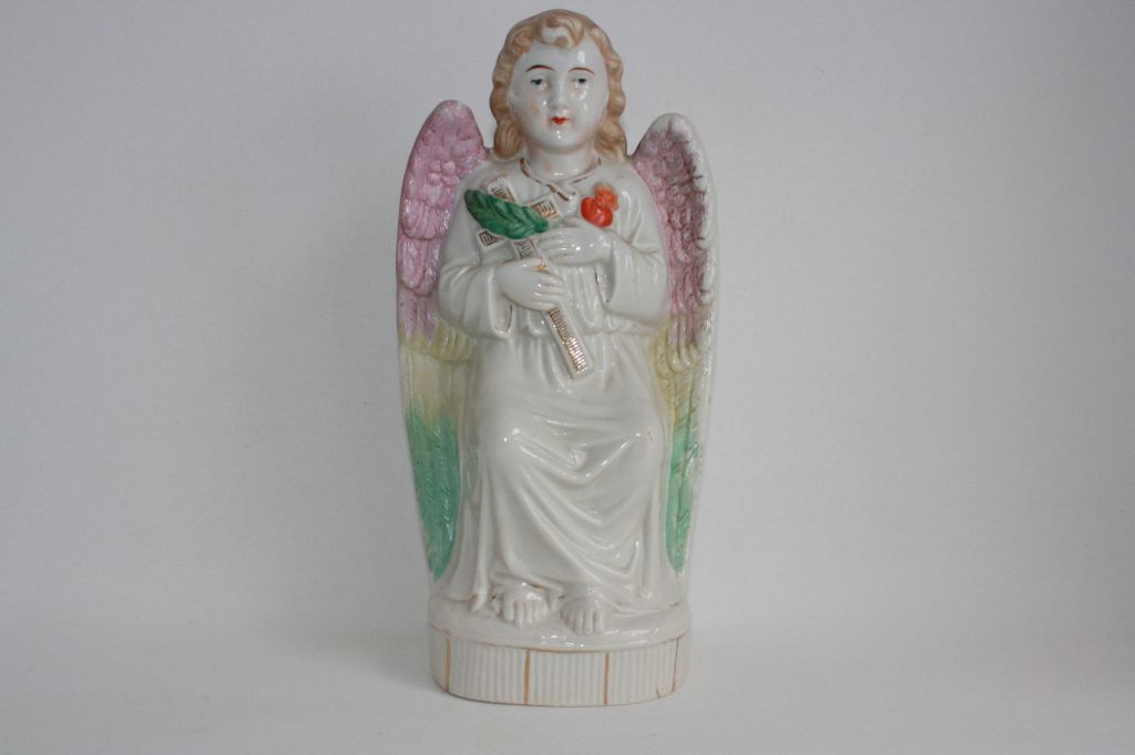 Stará porcelánová soška anděla. V zadní části je vyražené číslo 458.