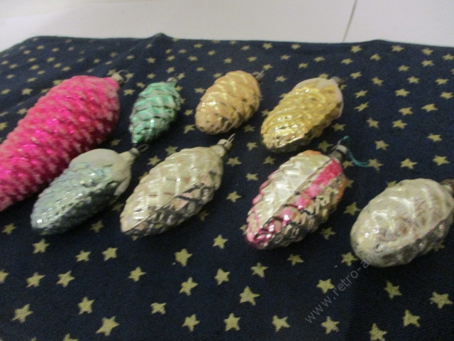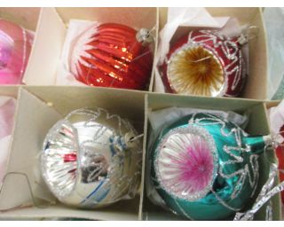 Retro baňky - 12 kusů. Průměr baněk 6,5 - 7 cm.