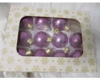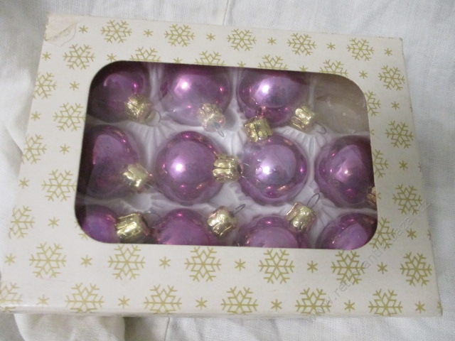 Retro baňky, vánoční ozdoby - 11 kusů. Malé fialové baněčky, průměr 2,5 cm. Výrobce: DUV Dvůr Králové.